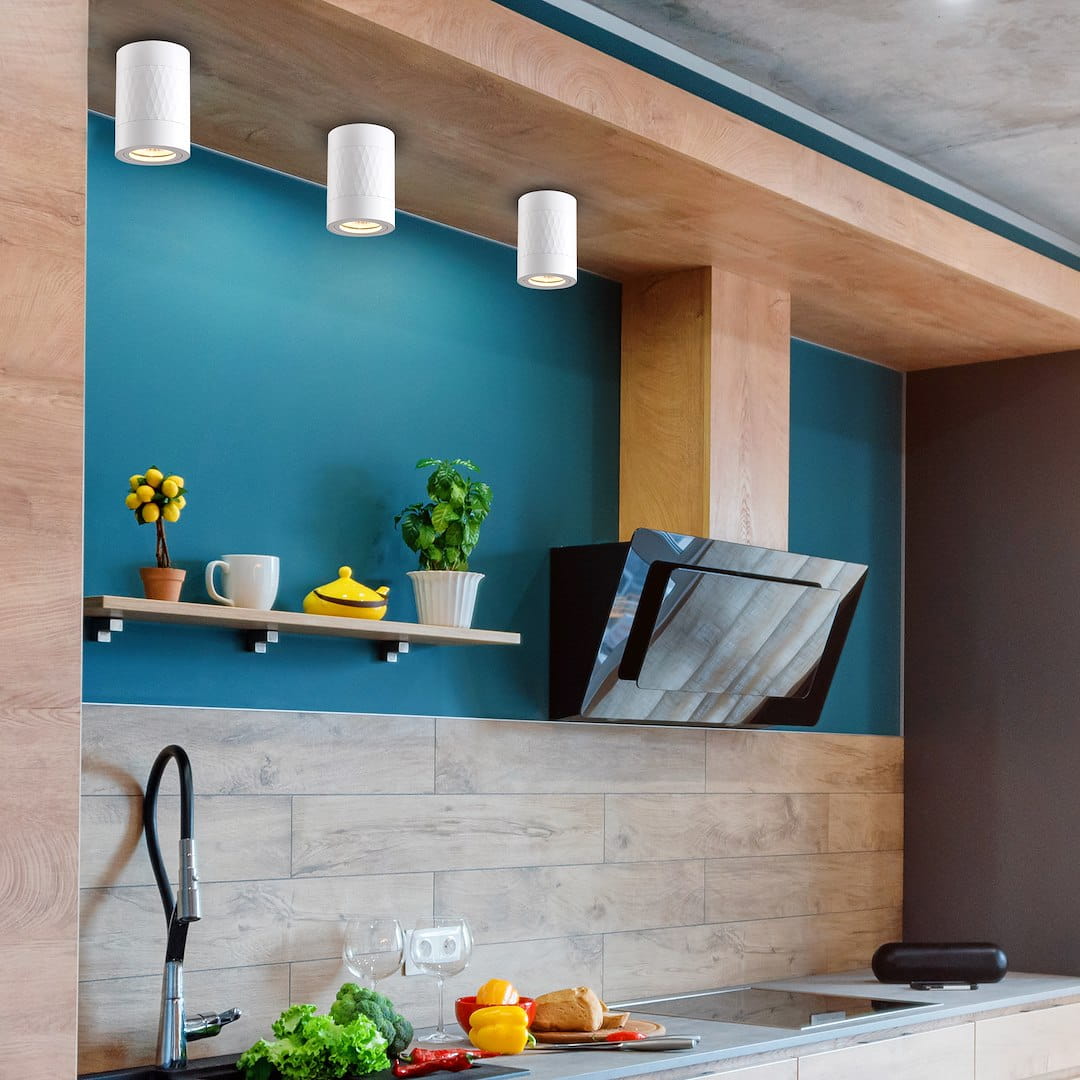 Niewielkie rozmiary wszystkich opraw umożliwiają ich dowolne ułożenie na suficie, w zależności od indywidualnych potrzeb i rozkładu pomieszczenia. Zwłaszcza w kuchni kluczową rolę odegra ich równomierne rozmieszczenie, które pozwoli na wyeliminowanie niekorzystnego efektu cieni. Oprawy natynkowe BIMA wykonano z wysokiej jakości aluminium. Stopień ochrony IP20, co oznacza natomiast, że lampy są odporne na szkodliwe działanie niewielkich pyłków.