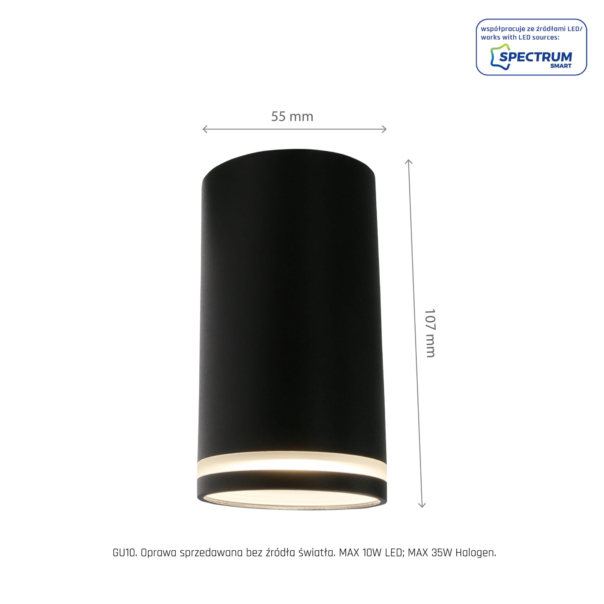 CHLOE MINI RING NATYNKOWA GU10 230V IP20 fi55*107mm CZARNY nieruchoma - Spectrum LED