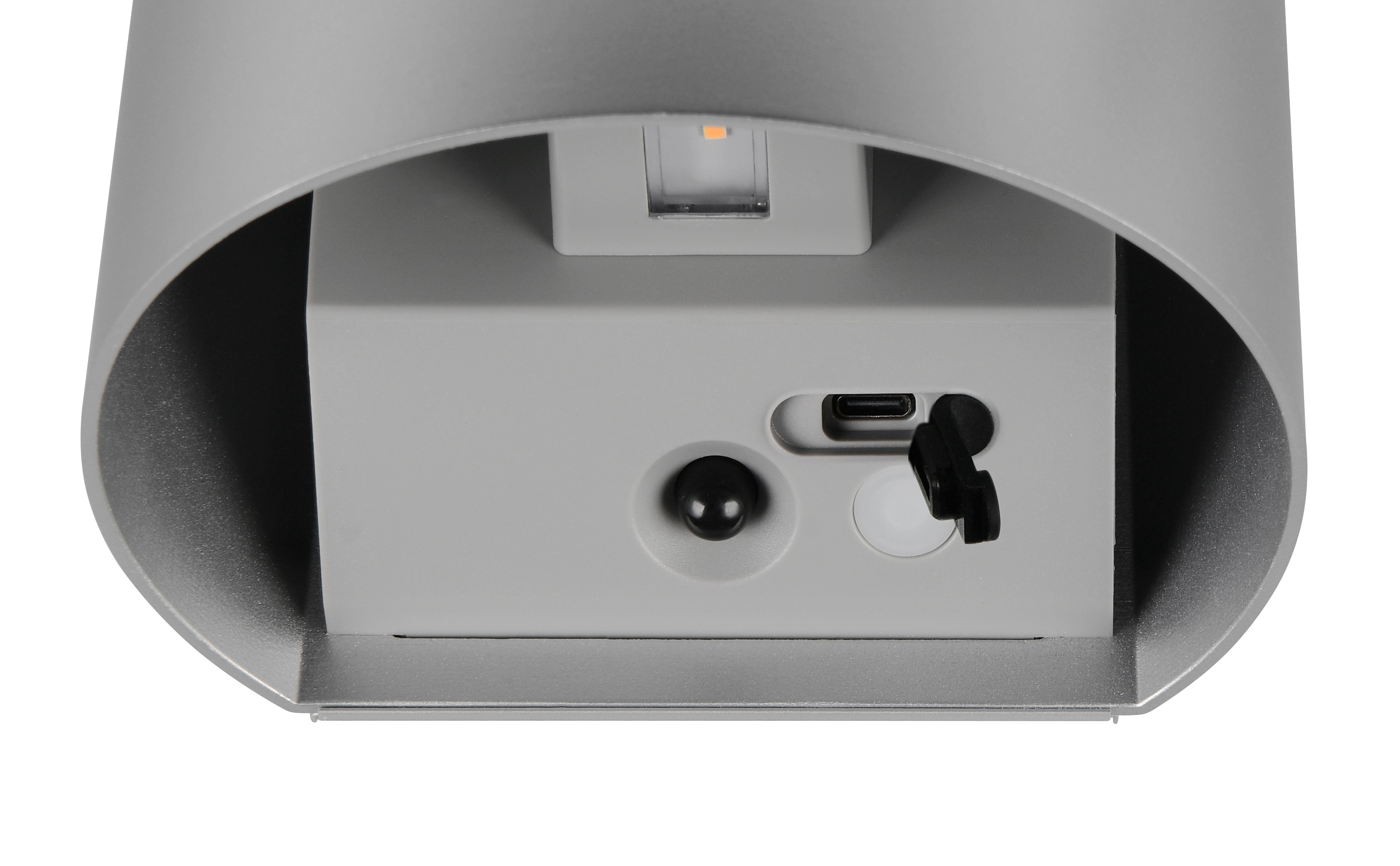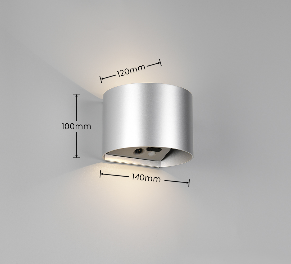 GENIE IP44. Czujnik ruchu. Akumulator ładowany przez złącze USB-C. Oświetlenie w górę i w dół. Połączenie USB. Montaż na ścianie. Kolor Tytanowy