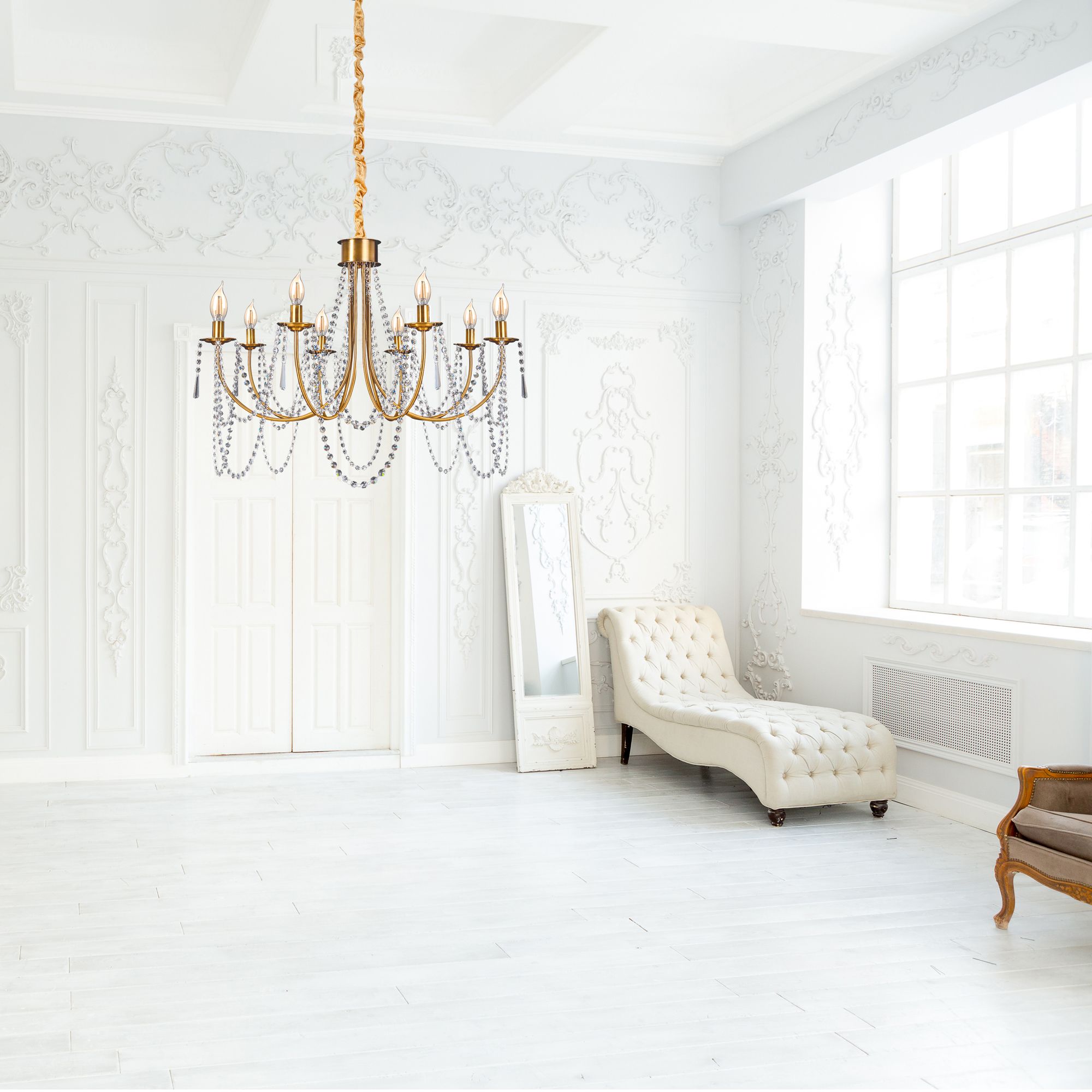 Lampa Kryształowa Żyrandol APP766-8CP Złota - Toolight