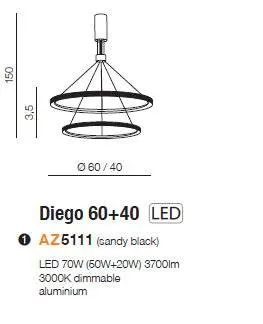 Lampa wisząca DIEGO 60+40 3000K DIMM BK AZ5111 - AZzardo
