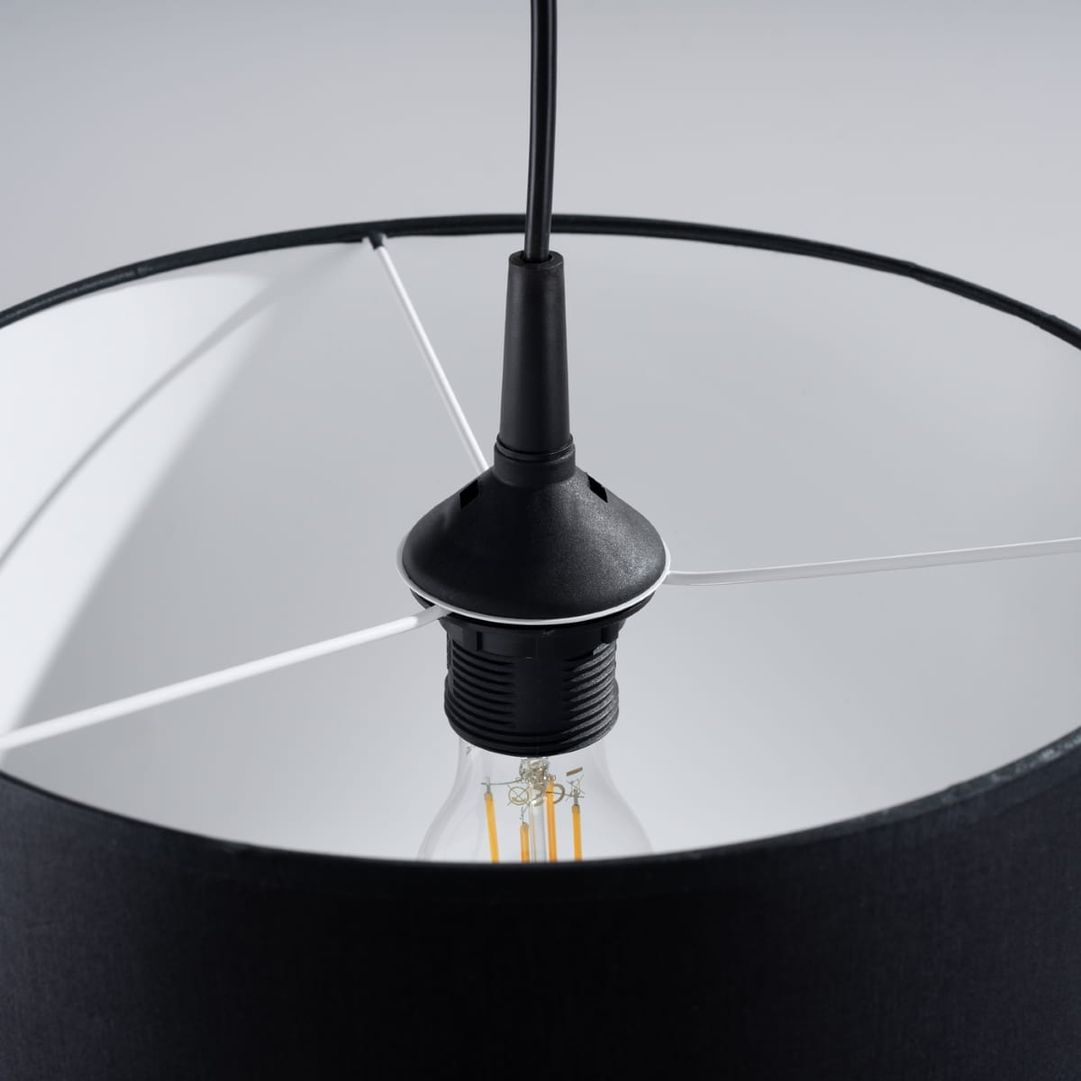 Źródło światła: E27, 1x max 15W LED, ~230V, 50Hz, IP20, klasa ochronności II Źródło światła nie jest w komplecie. Wymiary: 30/30/88 cm Materiał: tkanina, PVC Kolor: czarny