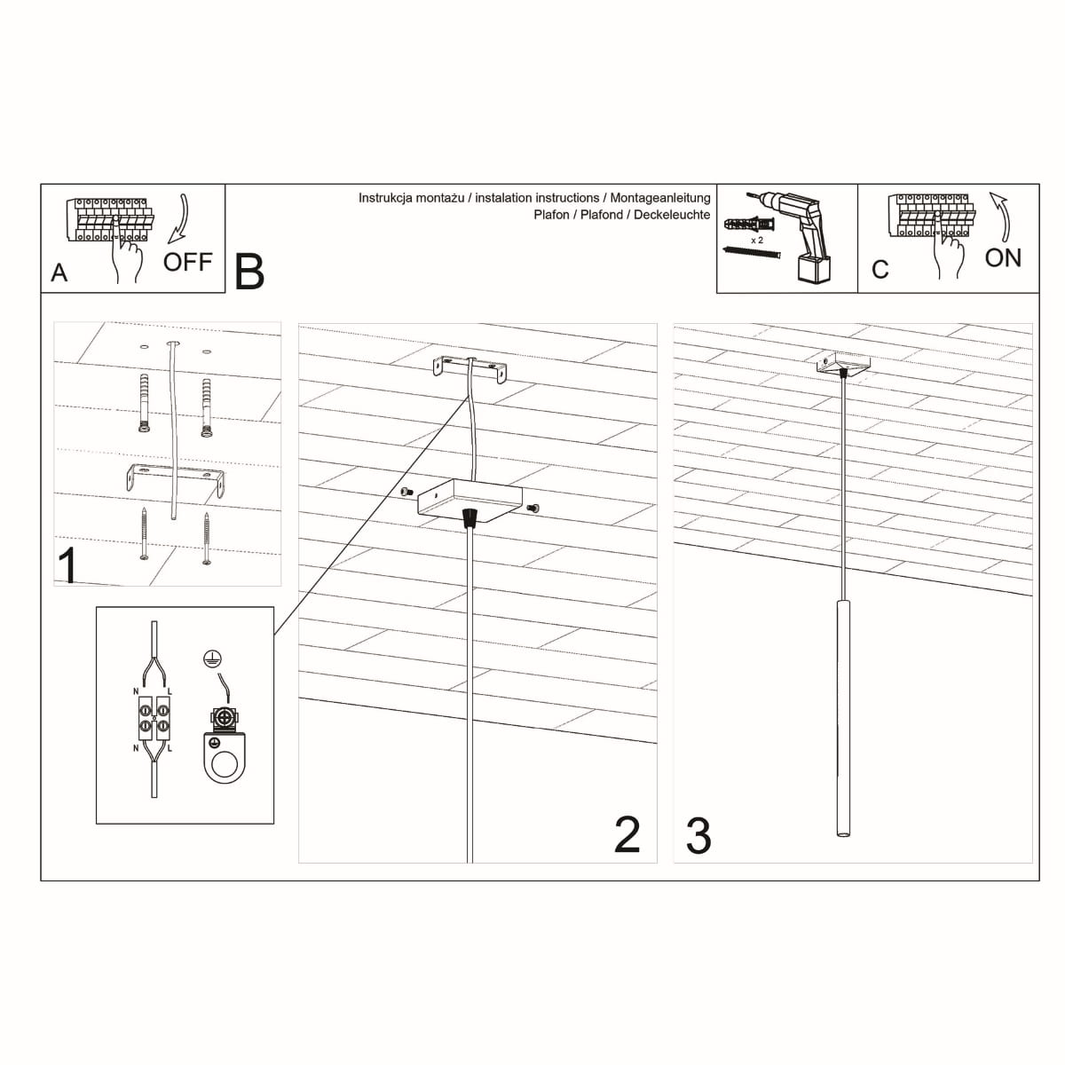 Lampa wisząca PASTELO 1 czarna - Sollux