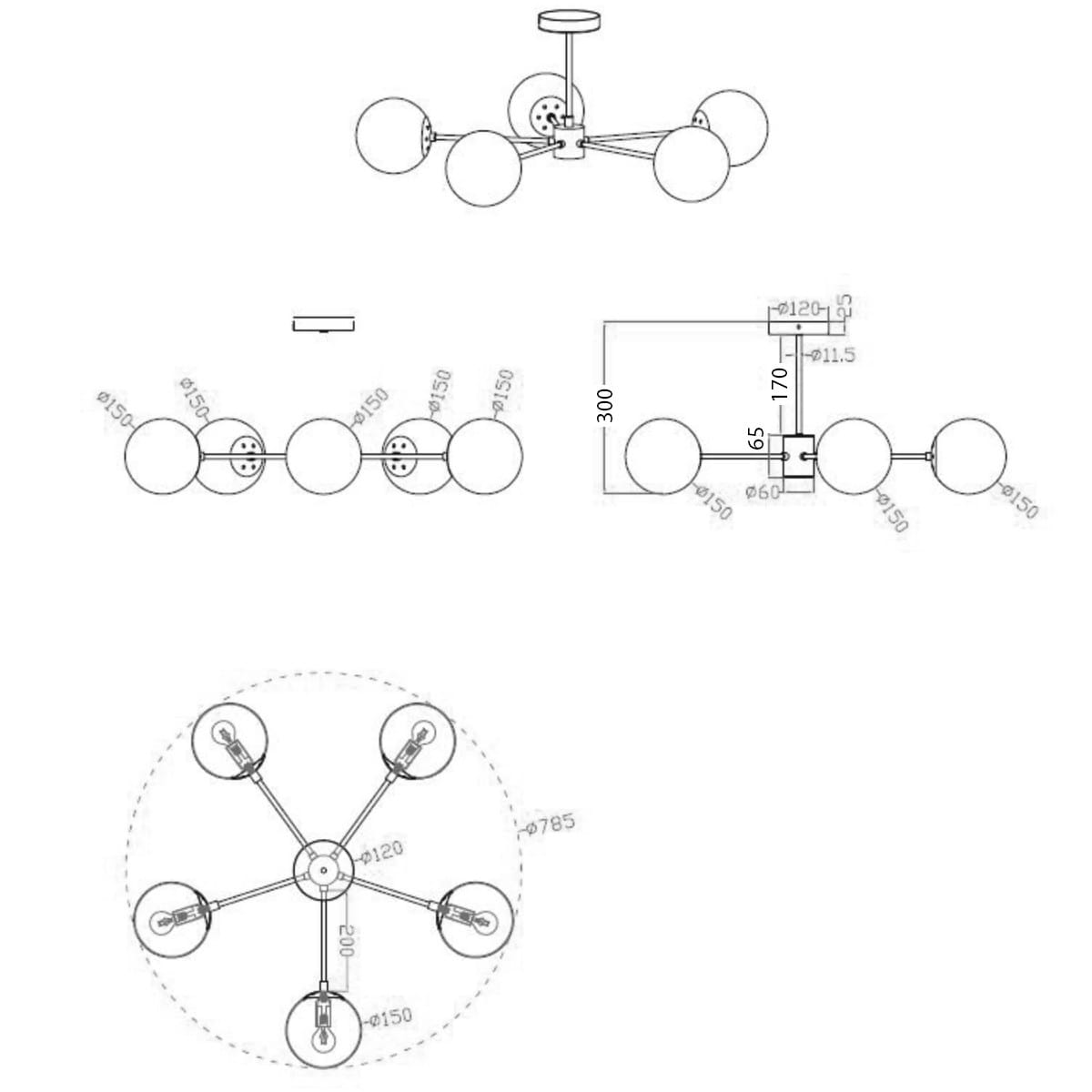 Lampa wisząca Roma 5xE14 czarna LP-1345/5P BK - Light Prestige