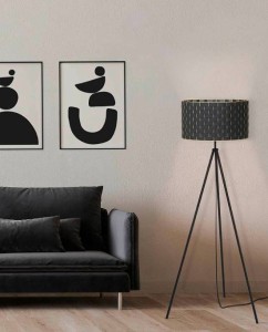 Pięknie wykonana lampa stojąca na trójnogu serii MARASALES. Czarne nogi oraz czarny, przeplatany abażur owinięty wokół złotego stelaża tworzą wyjątkowy efekt. Źródło światła to jedna żarówka na klasyczny, duży gwint - E27 (nie stanowi kompletu). Oprawa pasuje niemal do każdego stylu wyposażenia, sprawdzi się zarówno w salonie, jadalni czy też w sypialni. Lampa podłogowa typu tripod.