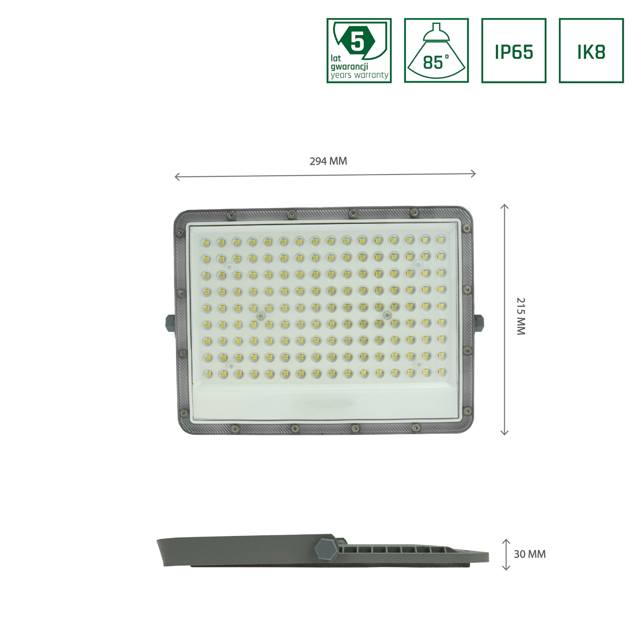 NOCTIS MAX NAŚWIETLACZ 100W CW 230V 85st IP65 294x215x30 mm SZARY 5 lat gwarancji - Spectrum LED