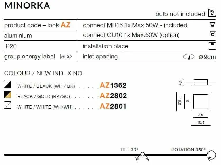 Oprawa podtynkowa MINORKA BK/GO AZ2802 - AZzardo