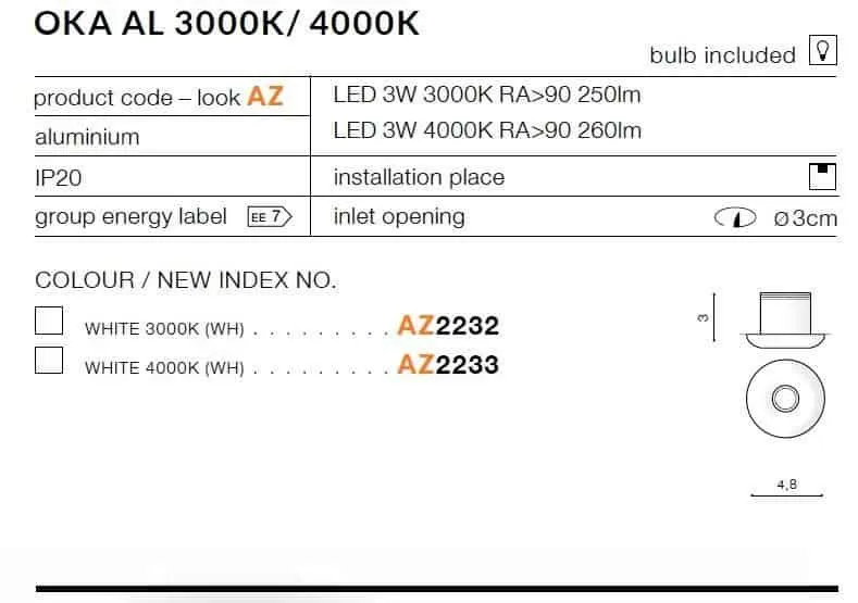 Oprawa podtynkowa OKA AL 3000K WH AZ2232 - AZzardo