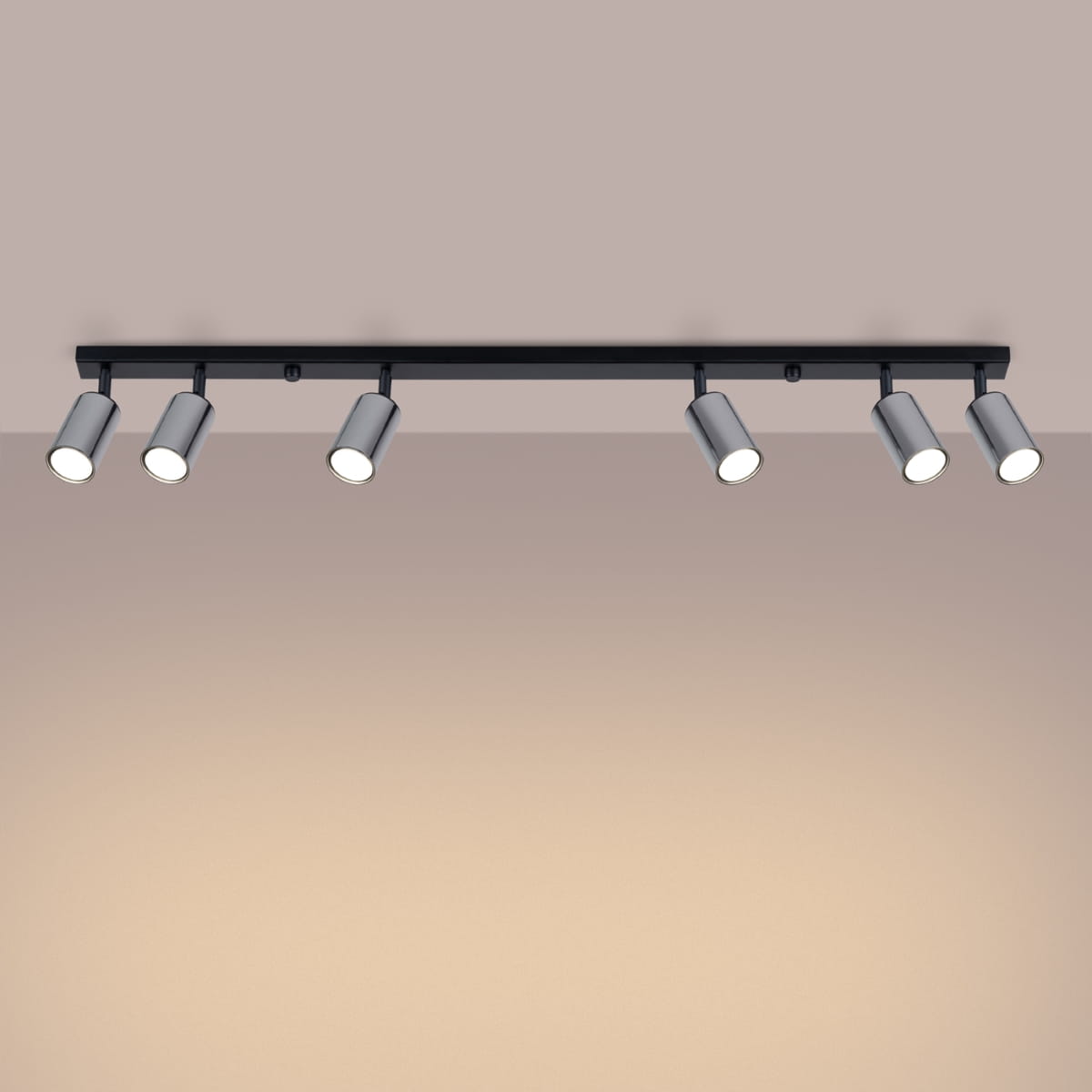 Źródło światła: GU10, 6x max 10W LED, ~230V, 50Hz, IP20, klasa ochronności I Źródło światła nie jest w komplecie. Wymiary: 118/6/18,5 cm Materiał: stal Kolor: czarny, chrom