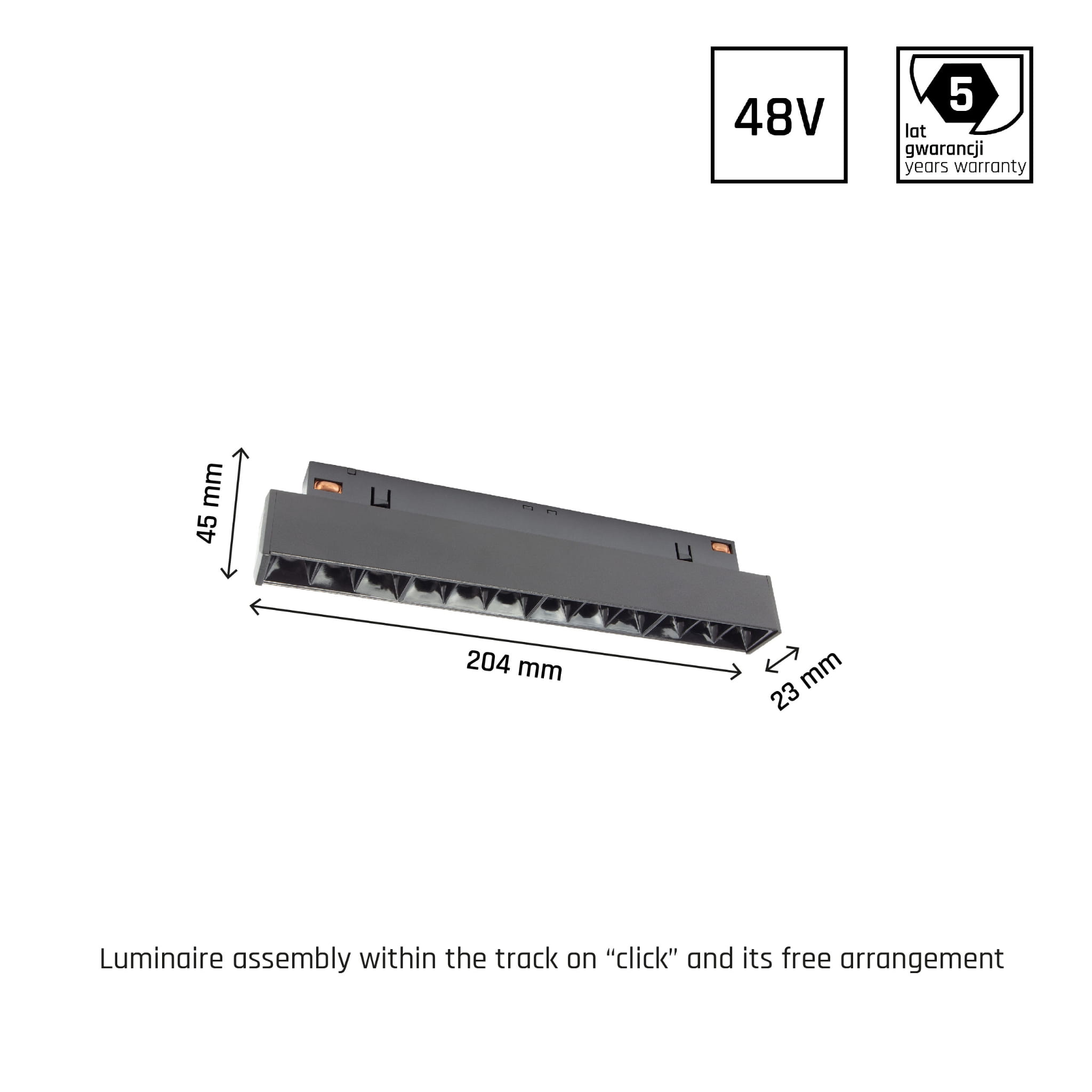 SYSTEM SHIFT - GRID S oprawa na szynoprzewód 204x23x42mm 12W 35st czarny 5 lat gw. - Spectrum LED