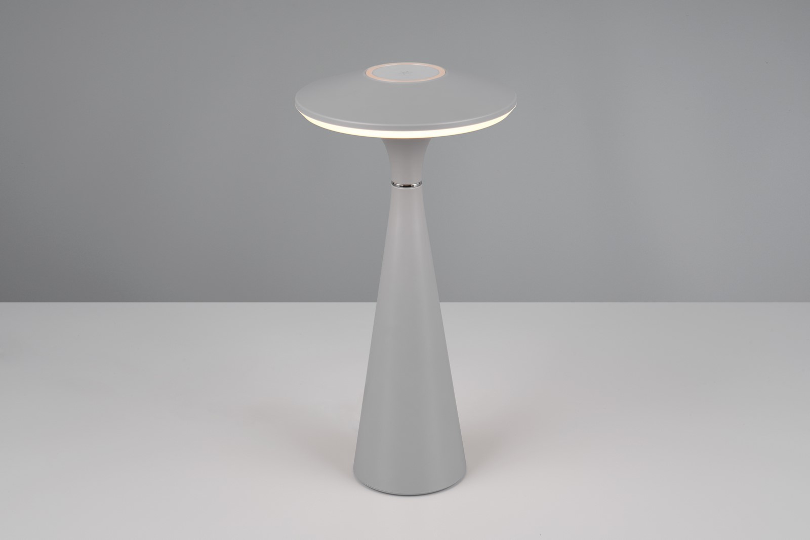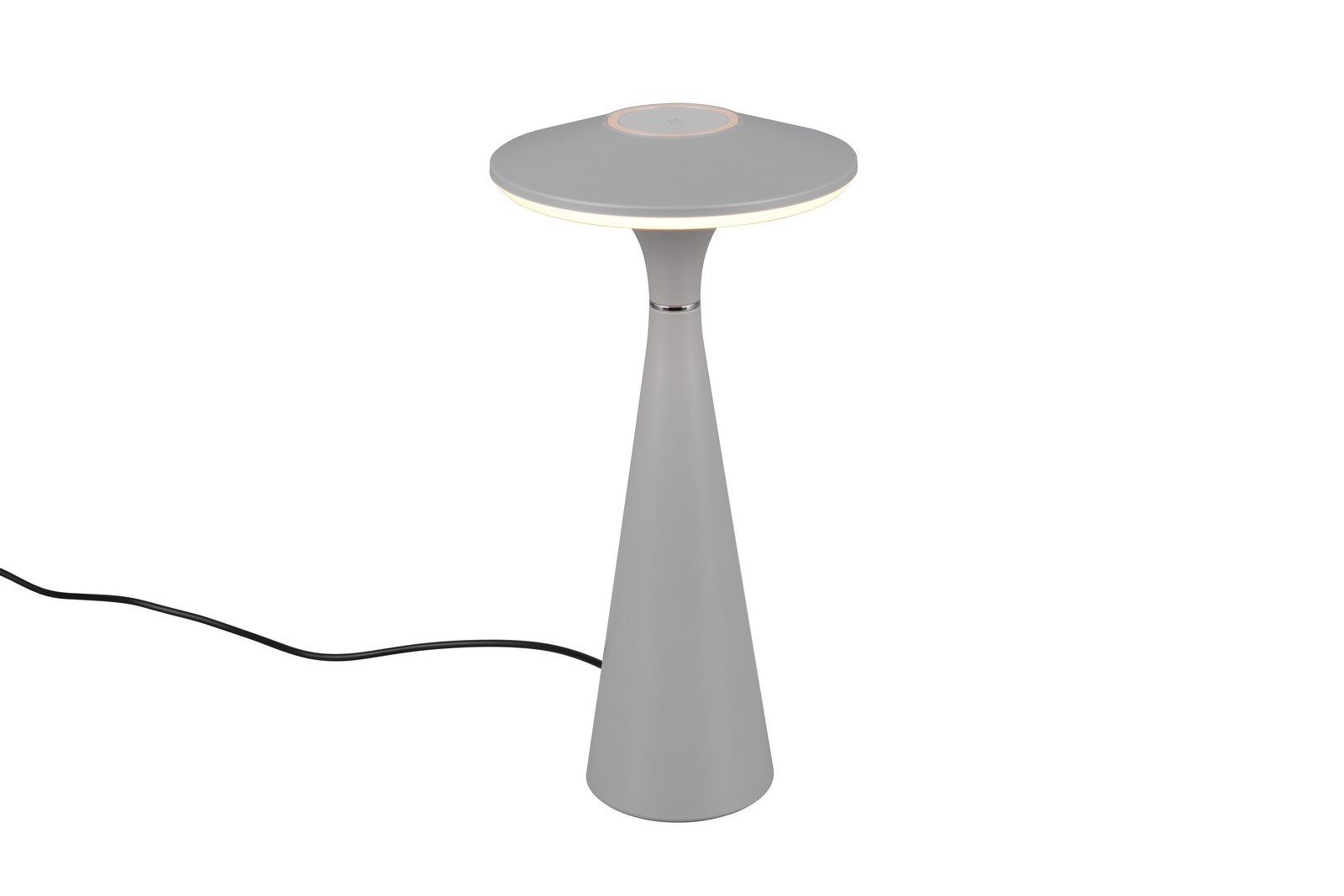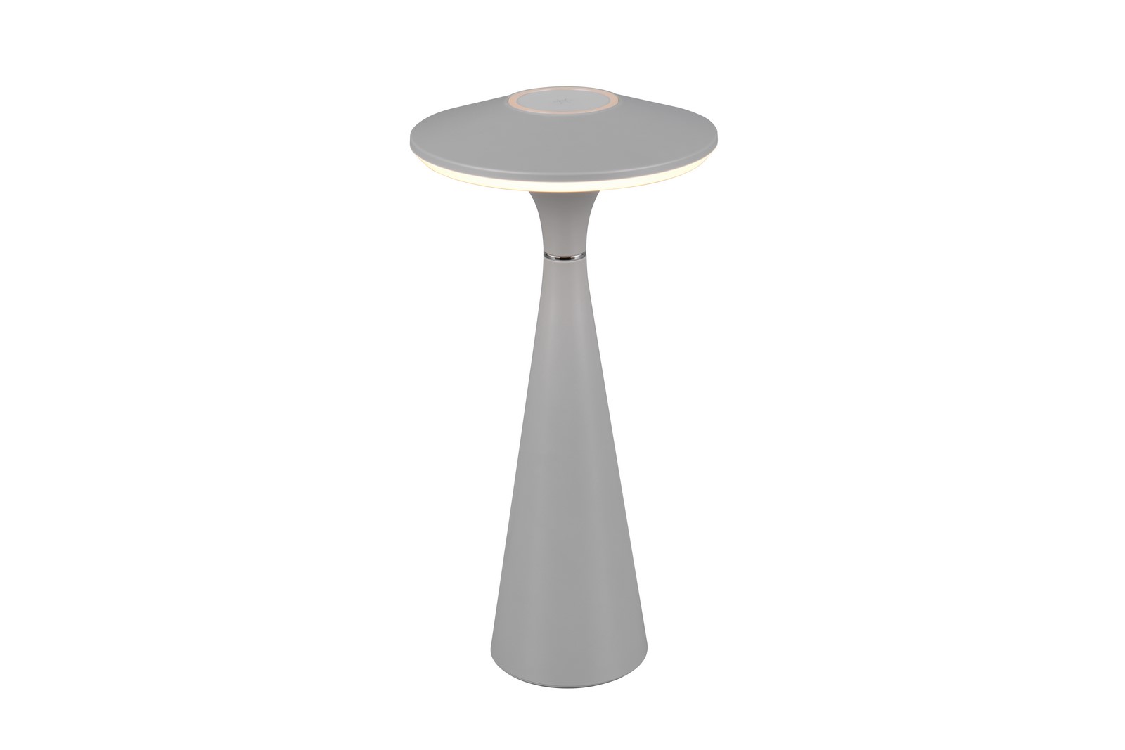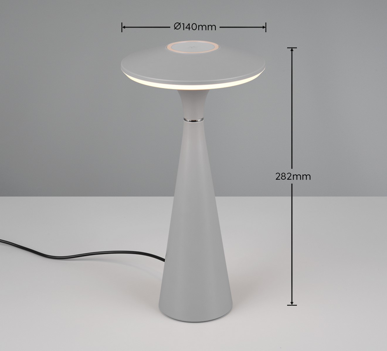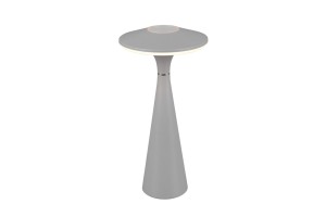 TORREZ Kolor szary. Regulowana barwa światła. IP44. Akumulator ładowany przez złącze USB-C. Czas ładowania 3h, czas świecenia 4h. Bezstopniowe ściemnianie za pomocą funkci dotykowej. IP44