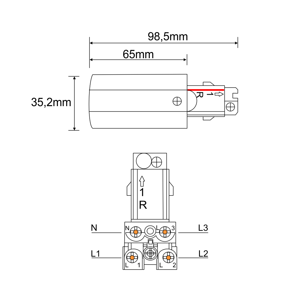 Zasilanie prawe do szynoprzewodu 3F 230V - Czarne 8107 Antigo